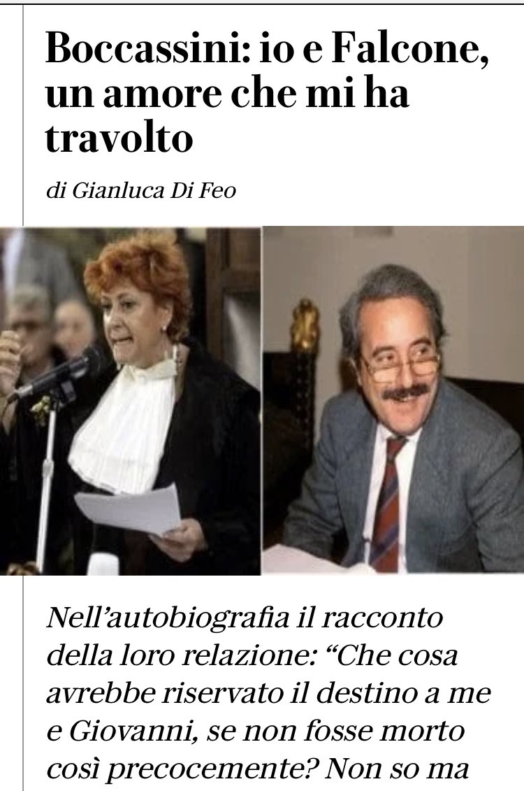 Lunedì 11 ottobre 2021 Boccassini complice di Falcone per viaggi negli Usa. Il mio era un sentimento profondo ero innamorata della sua anima della. Boccassini ha descritto il proprio amore per Giovanni Falcone con parole che da tempo non leggevo e che ogni uomo sognerebbe di leggere di sé.